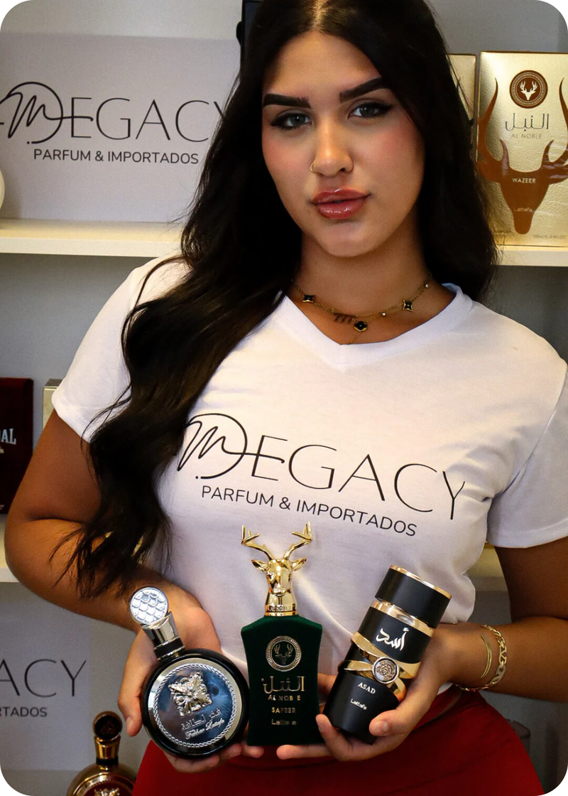 Na Loja Megacy, oferecemos perfumes exclusivos e de alta qualidade para quem busca se destacar. Com uma seleção cuidadosa de fragrâncias premium, garantimos que você encontre o perfume perfeito para sua personalidade e estilo. Nossa missão é proporcionar uma experiência de compra segura, prática e acessível, para que você se sinta único a cada spray.
